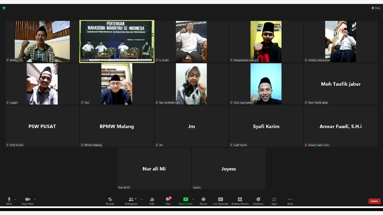 Atas dasar hal itu, Badan Pembina Mahasiswa Wahidiyah (BPMW) Pusat mengadakan acara Pertemuan Mahasiswa Wahidiyah se-Indonesia pada sabtu (19/02) melalui pertemuan virtual via zoom meeting. Acara ini diikuti oleh mahasiswa wahidiyah mulai dari tingkat cabang, wilayah hingga pusat. Dibuka oleh K. Noer Sholeh Zainal Fanani, acara ini berjalan dengan lancar.